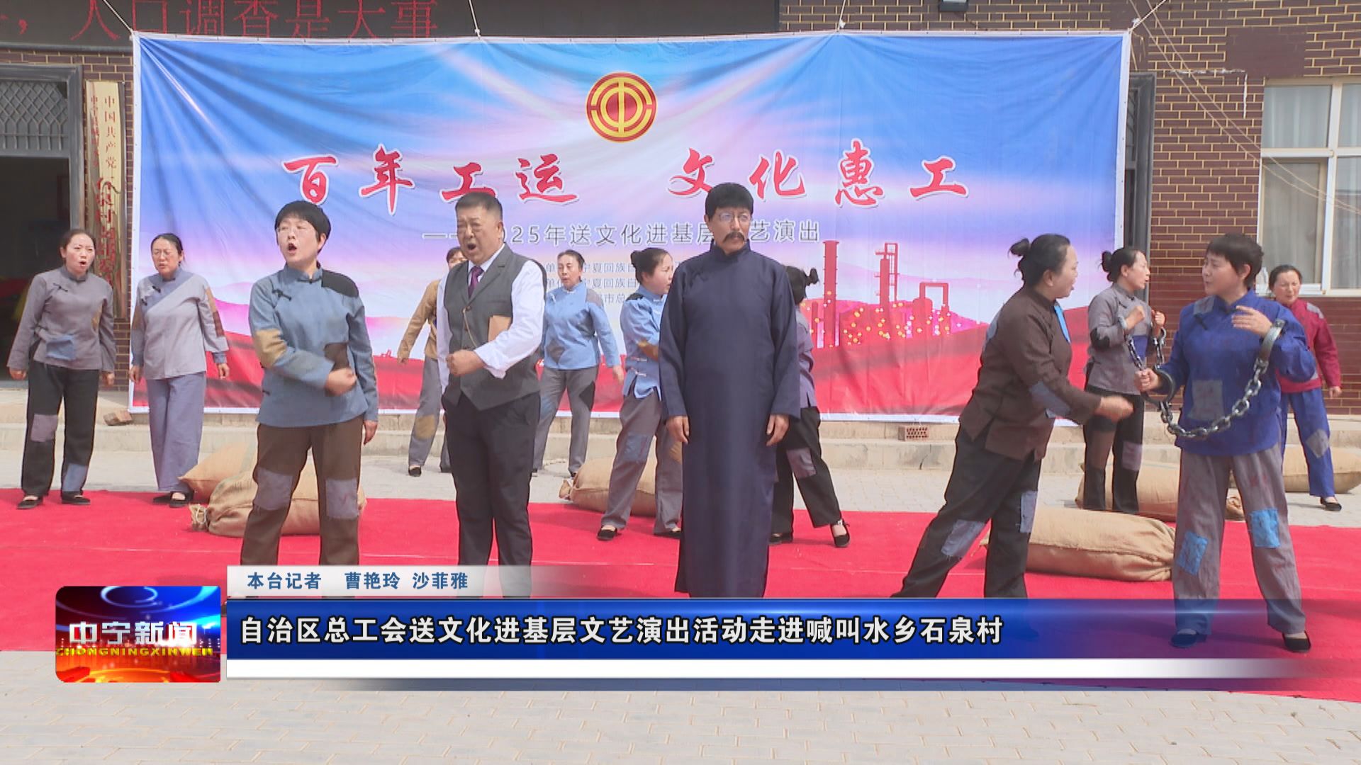 近日,由自治区总工会主办,宁夏工人文化宫和县总工会承办的“百年工运 文化惠工”送文化进基层文艺演出活动走进喊叫水乡石泉村,通过精彩纷呈的文化盛宴,铸牢中华民族共同体意识,丰富基层群众精神文化生活。
