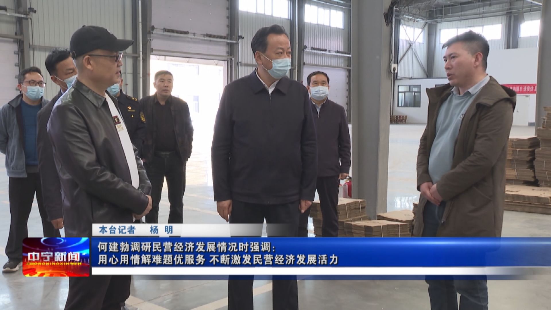 何建勃希望,广大民营企业要聚焦主业、防范风险、担当责任,努力实现稳健经营、良性发展。要强化运营机制、要素保障和专业管理,围绕“六新六特六优”产业布局深度耕耘,不断增强科研创新力和核心竞争力。要牢固树立绿色发展理念,持续加强废气处置、固废利用,不断改进工艺流程,切实降低单位能耗。要牢固树立生命至上理念,严格落实安全生产主体责任,健全完善常态长效机制,切实抓好安全生产工作,坚决守住安全生产底线。要积极履行社会责任,厚植家乡情怀,主动参与招商引资,关心关注公益事业,始终立足中宁、扎根中宁、发展中宁。