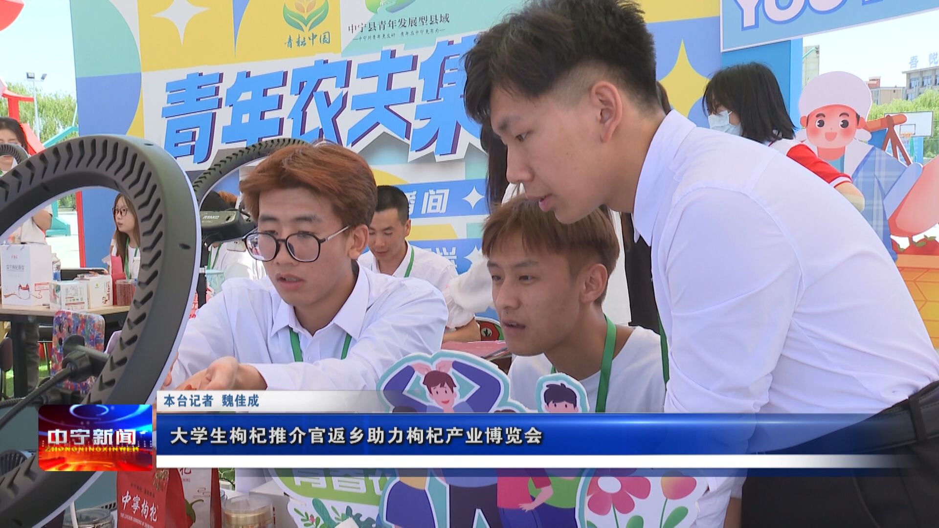 在第7届枸杞产业博览会期间,中宁团县委结合共青团‘青耘中国’直播助农活动,组织了来自区内外6所高校的21名大学生杞乡推介官返回家乡,通过短视频创作、直播带货等方式为第7届枸杞产业博览会助力。