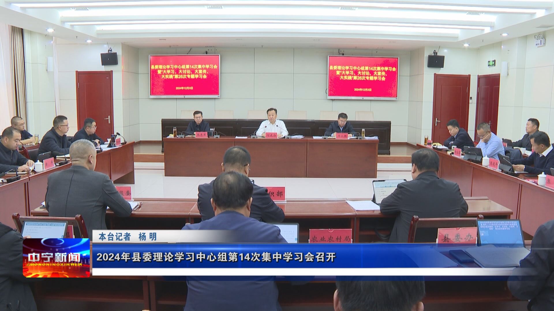 12月3日,市人大常委会副主任、县委书记何建勃主持召开2024年县委理论学习中心组第14次集中学习会暨党的二十大和习近平总书记视察宁夏重要讲话指示批示精神“大学习、大讨论、大宣传、大实践”第26次专题学习会,周永根、张志军等县领导参加。