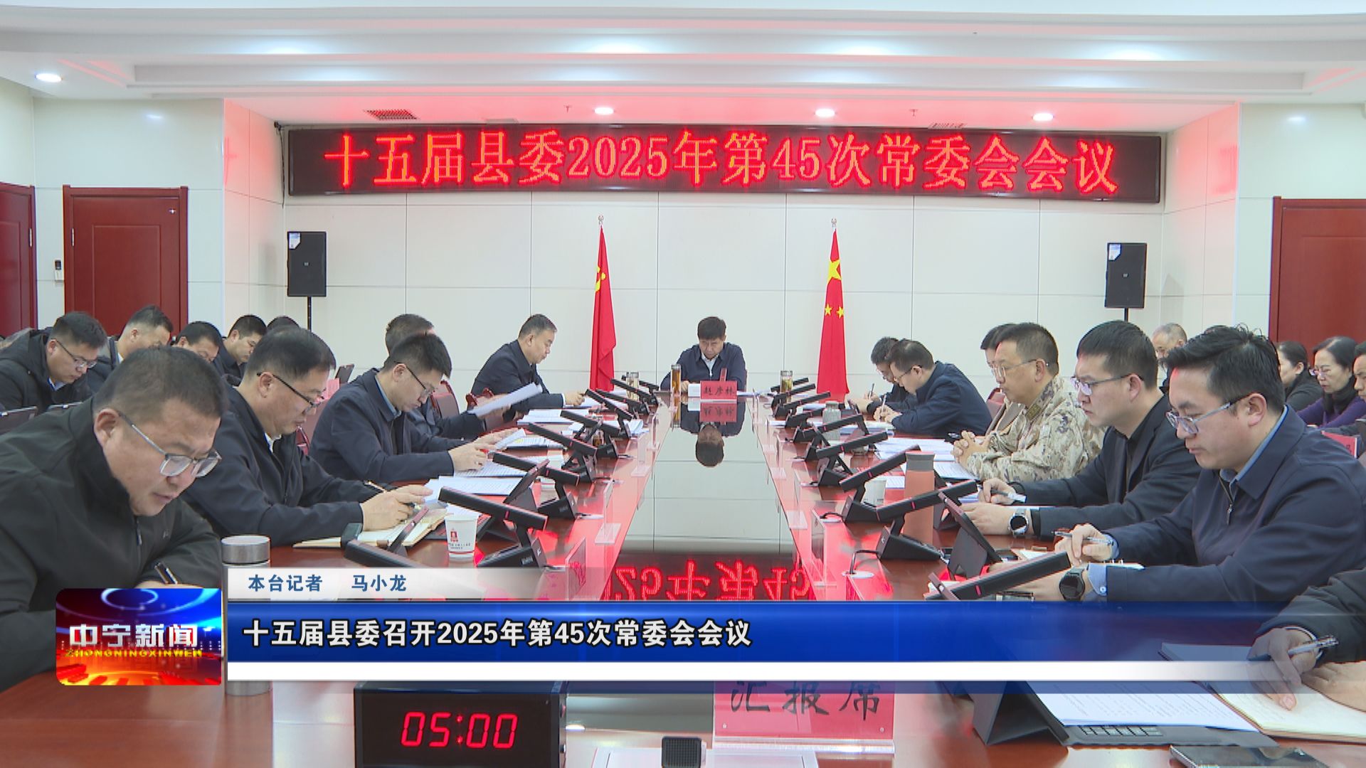 12月19日,县委书记赵彦林主持召开十五届县委2025年第45次常委会会议,传达学习习近平总书记在中央经济工作会议上的重要讲话精神、对未成年人思想道德建设作出的重要指示精神,导学解读《中国共产党工作机关条例》;听取全县优化基础教育资源布局、行政复议等工作情况汇报;安排部署2026年重点项目建设、中央生态环保督察反馈问题整改等工作;研究《中宁县创建第八届全国县级文明城市工作方案》等事宜。
