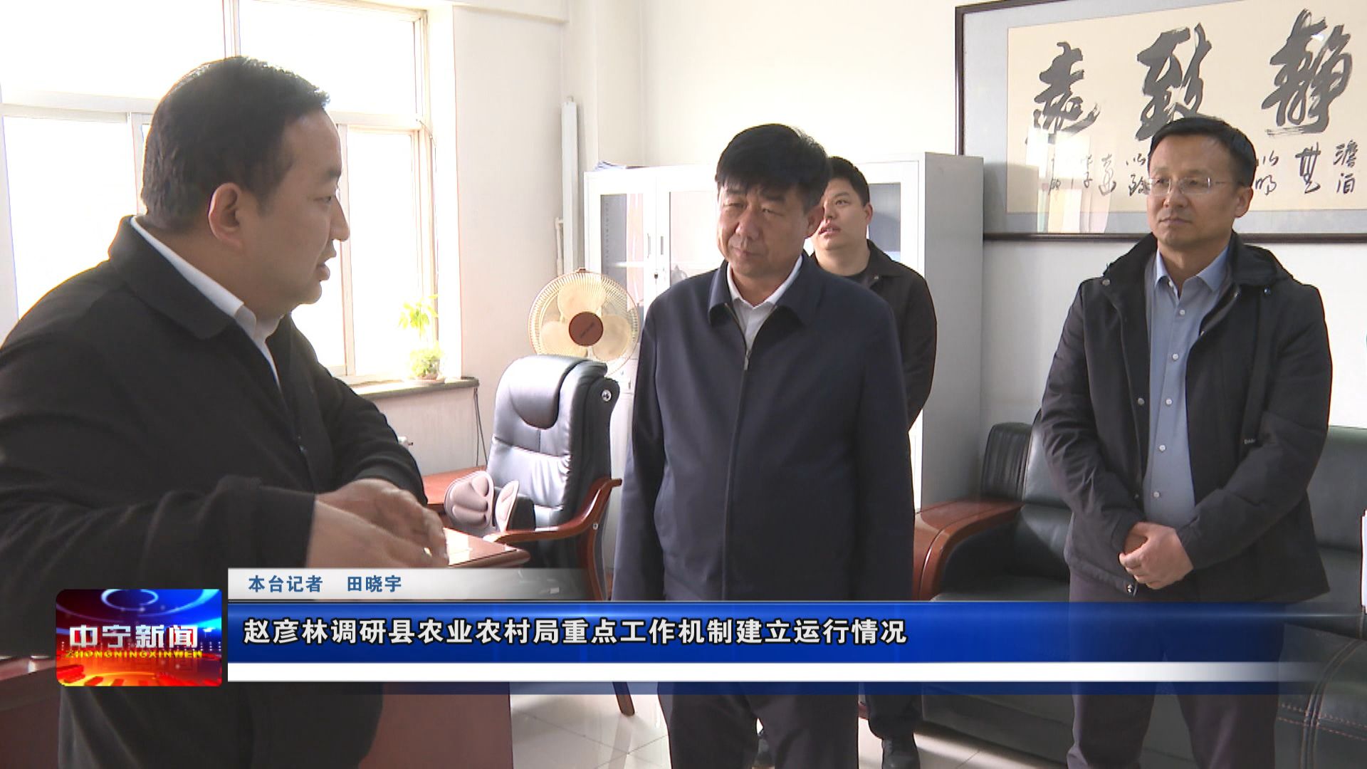 4月22日,县委书记赵彦林调研县农业农村局重点工作机制建立运行情况,强调要攻坚克难、加压奋进,凝心聚力谋发展,扑下身子抓落实,全力推动农业农村现代化,为奋力谱写中国式现代化中宁篇章提供有力支撑。县委副书记、政法委书记宋学强等县领导参加调研。