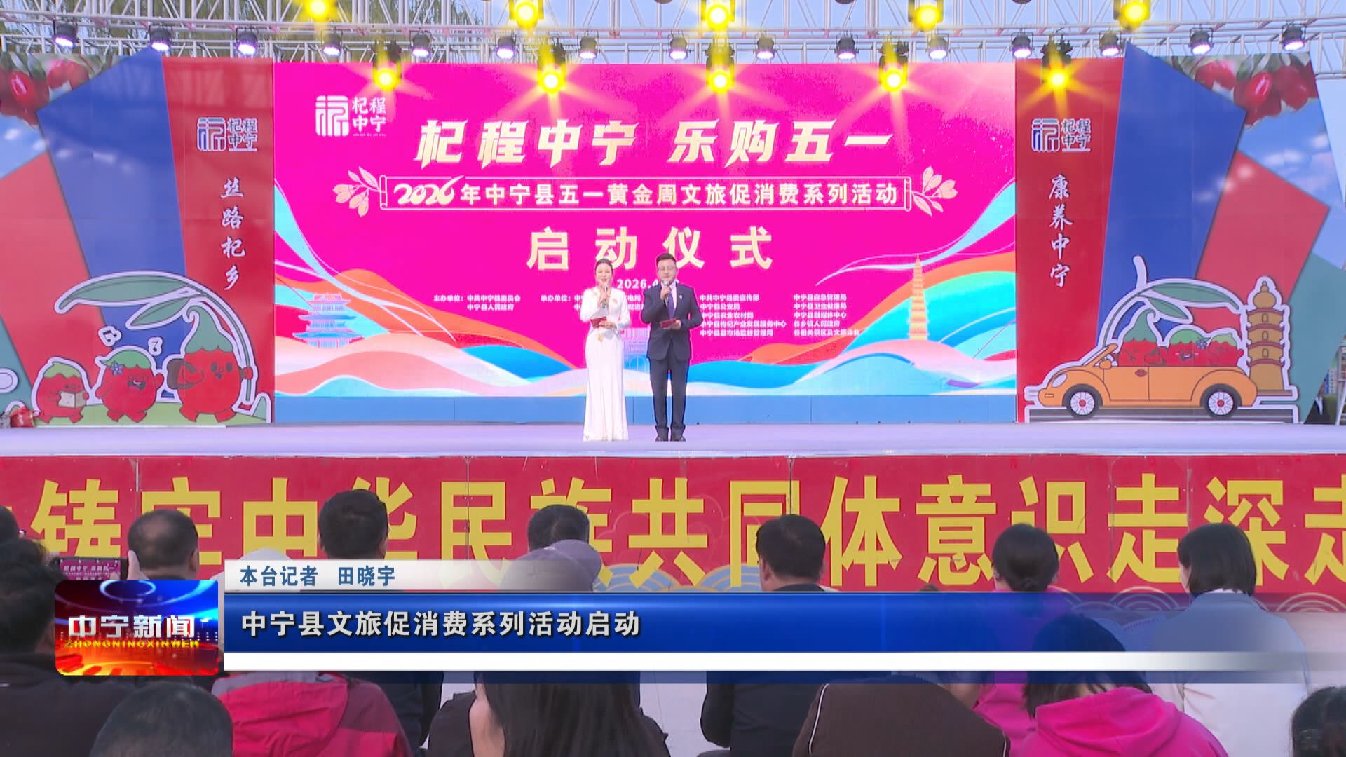 4月22日晚,我县在人民广场举行“杞程中宁·乐购五一”2026年中宁县“五一”黄金周文旅促消费系列活动启动仪式,通过“文旅融合+消费促进”的模式,旨在诚邀八方游客走进杞乡、品味中宁,持续擦亮“丝路杞乡・康养中宁”城市名片,推动文旅产业更兴旺、消费市场更活跃、城市发展更具活力。县委书记赵彦林、县人大常委会主任黄宗浩、县政协主席张志军等县领导出席活动。