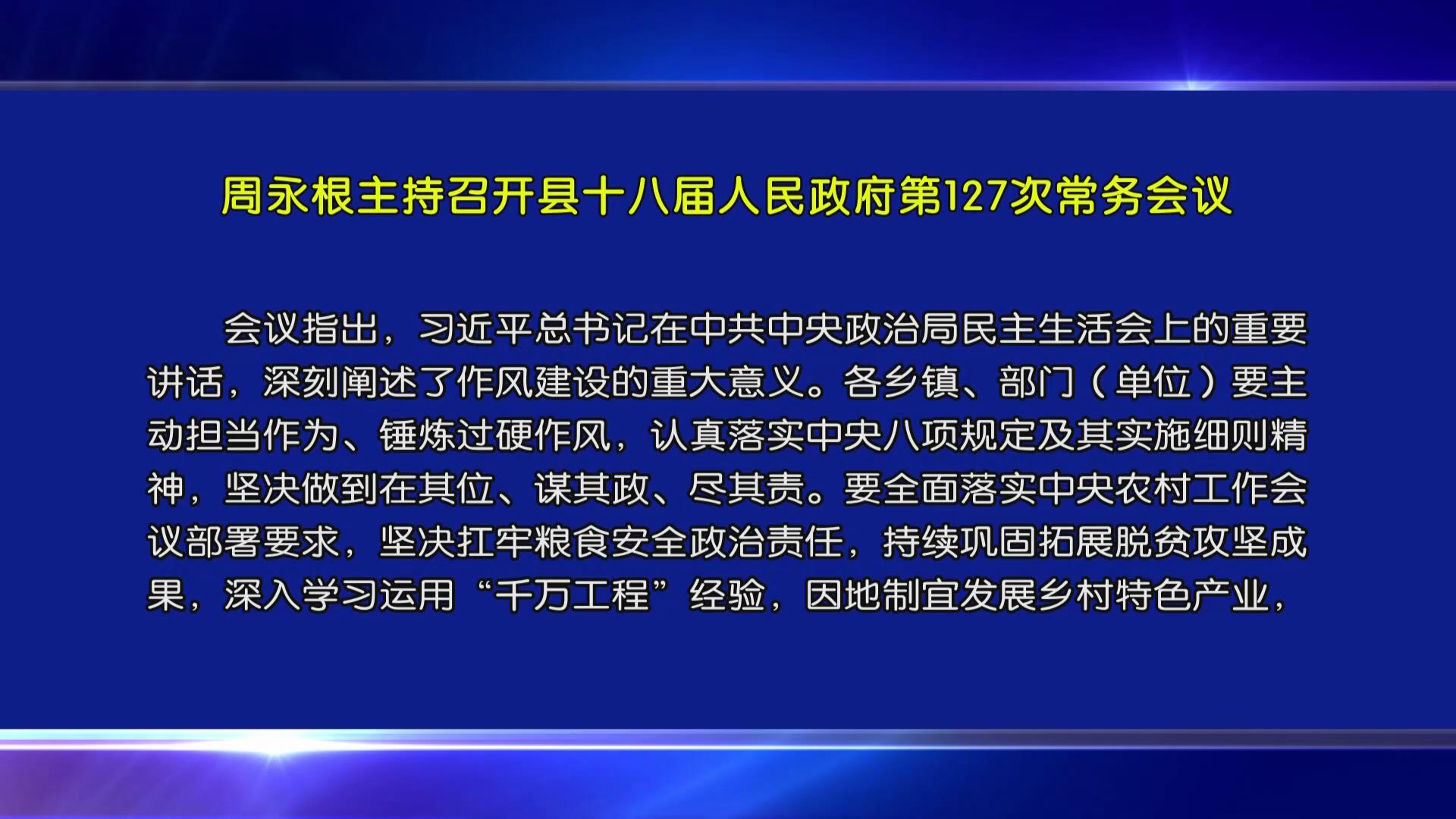 12月31日,中宁县委副书记、县长周永根主持召开县十八届人民政府第127次常务会议,传达学习习近平总书记在中共中央政治局民主生活会上的重要讲话精神,习近平总书记对做好“三农”工作作出的重要指示精神和中央农村工作会议精神,中国共产党宁夏回族自治区第十三届委员会第十二次全体会议公报精神,《中华人民共和国法治宣传教育法》等内容,听取了全县贯彻落实中央生态环境保护督察整改、脱贫人口小额信贷风险代偿工作情况的汇报,安排部署有关工作。