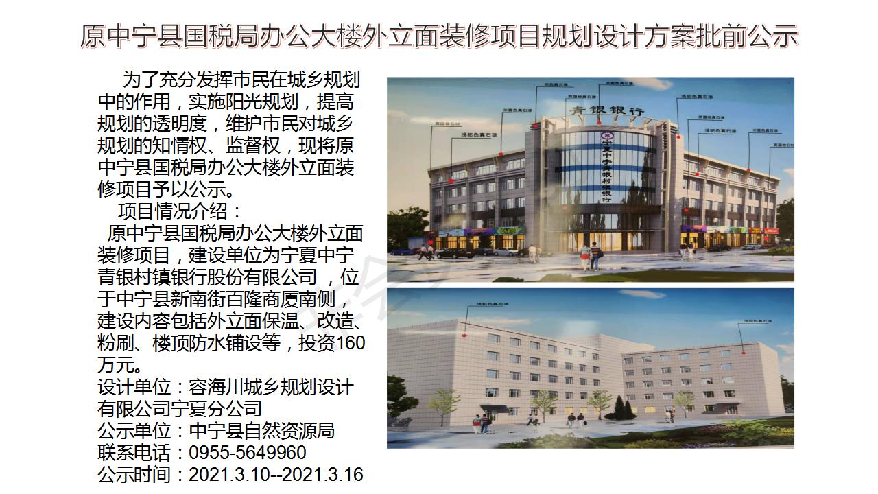 原中宁县国税局办公大楼外立面装修项目规划设计方案批前公示