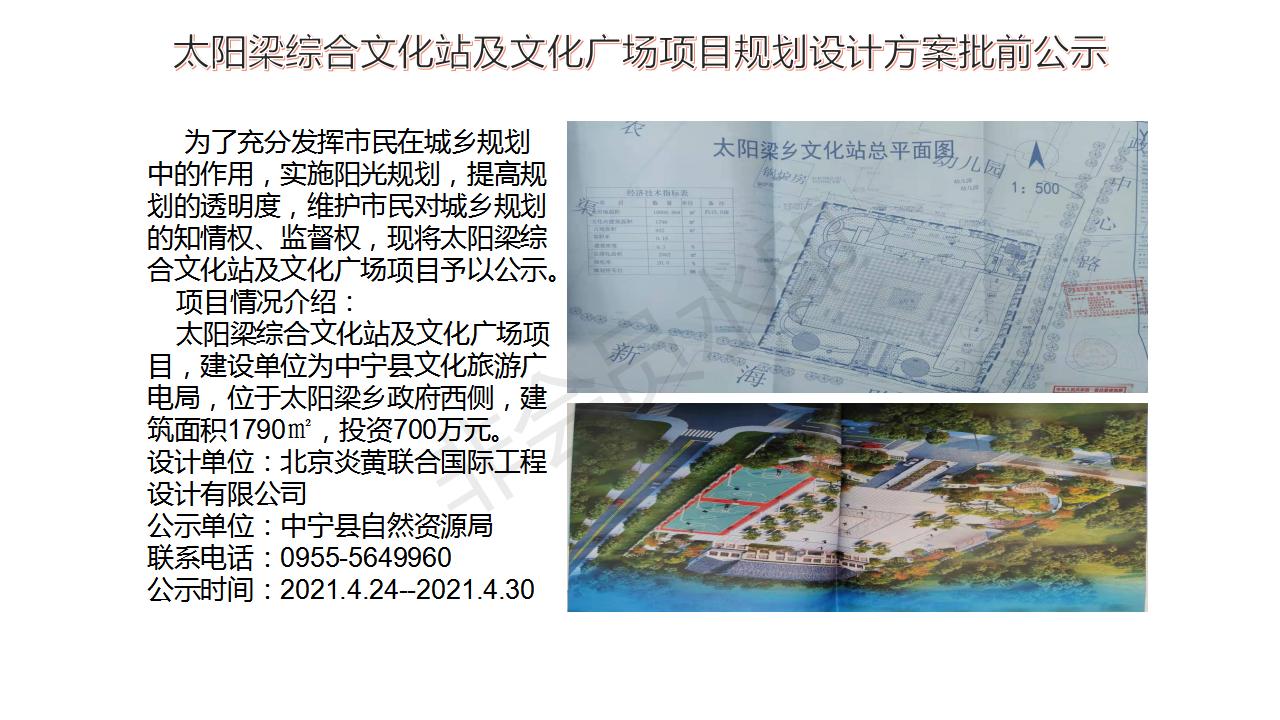 太阳梁乡文化站及文化广场项目规划设计方案批前公示