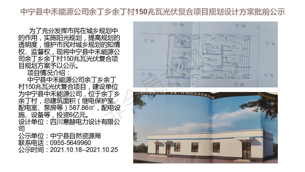 中宁县中禾能源有限公司余丁乡余丁村150兆瓦光伏复合项目规划设计方案批前公示