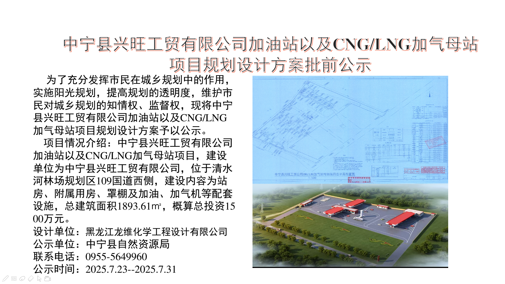 中宁县兴旺工贸有限公司加油站以及CNG/LNG加气母站 项目规划设计方案批前公示