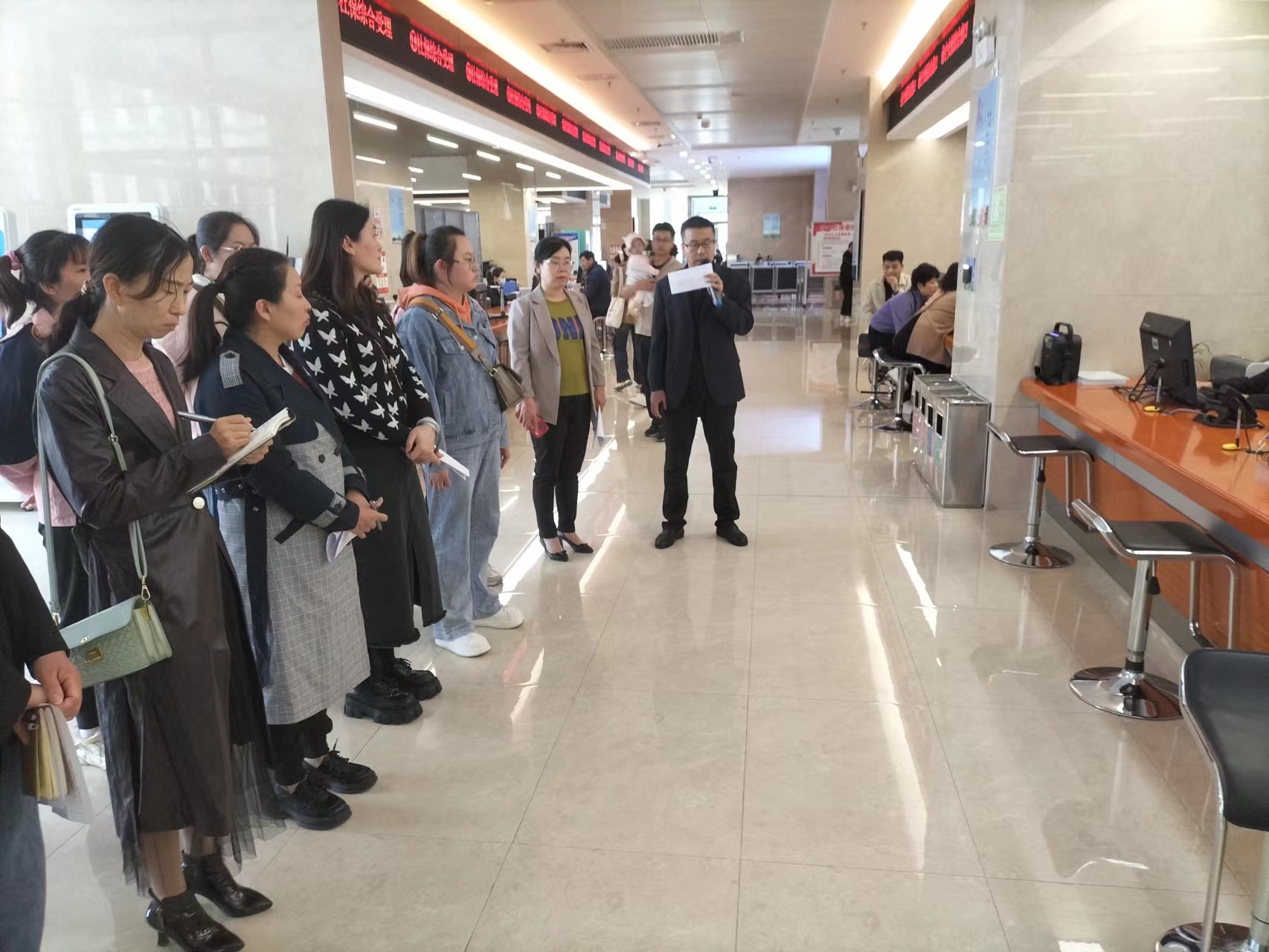首先,各位代表参观了政务大厅医疗保障业务服务窗口,医保服务中心负责人现场向代表们详细介绍了医疗保障业务办理流程及窗口运行服务情况。