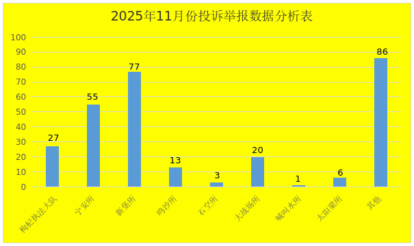 本月(2025年11月1日—2025年11月30日)全局共接收各类投诉举报咨询288件。其中消费投诉221件(12315平台投诉151件、12345平台投诉70件),消费举报63件,咨询3件,建议1件。已办结238件,办结率82.6%,为消费者挽回经济损失0.89万余元。
